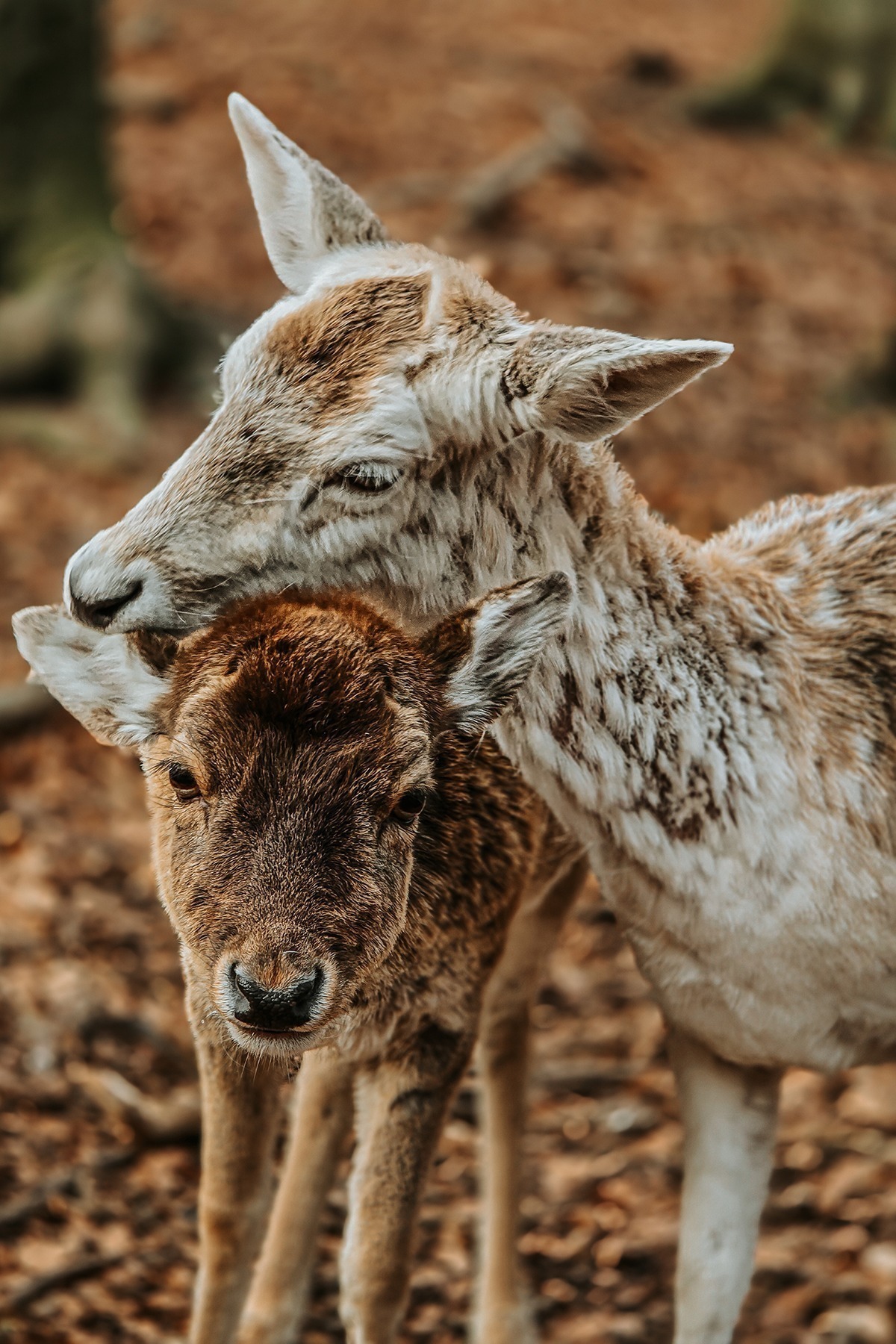 Wie ihr hier sehen könnt, sieht das Fell vom Damwild schon ein bisschen wie ein alter Teppich aus – das liegt vor allem am Fellwechsel. An manchen Stellen hat es bereits das alte Haarkleid geschmissen wie ein schlampiger Friseur, während an anderen noch das unverhoffte „Vorher“-Bild zurückbleibt. Dieser aktionreiche Prozess passiert zweimal im Jahr. Während des Fellwechsels wird das alte Fell abgestoßen, um Platz für das neue, dichtere und kuscheligere Sommerfell zu schaffen, das dem Damwild dann hilft, cooler auszusehen und gleichzeitig den Winter bei kühleren Temperaturen als stylisches Model zu meistern. Trotz seines momentanen „Ich-habe-nicht-geschlafen“-Looks ist dieser Prozess ein Zeichen für die Gesundheit und die Lebensfreude des Damwilds – das ist Natur und Mode in einem!