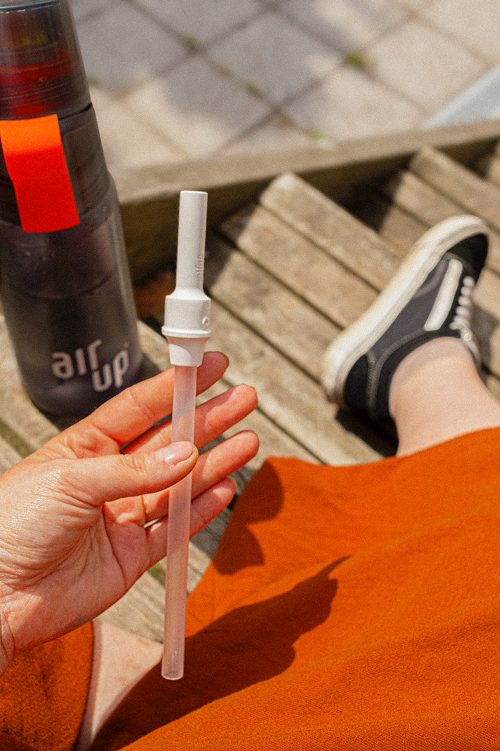 Meine Küche hat mittlerweile mehr air up Pods als Teesorten. Und das will was heißen. Ich hab eine Flasche für Zuhause, und den genialen air up Straw für die Arbeit – der Strohhalm-Aufsatz, mit dem ich mir einfach mein Glas Wasser schnappen kann, ohne jedes Mal die große Flasche mitschleppen zu müssen. Und ehrlich: Ich mag das Schlürf-Gefühl irgendwie lieber. Ist ein bisschen wie mit Strohhalm trinken als Kind – alles schmeckt aufregender. 🙂